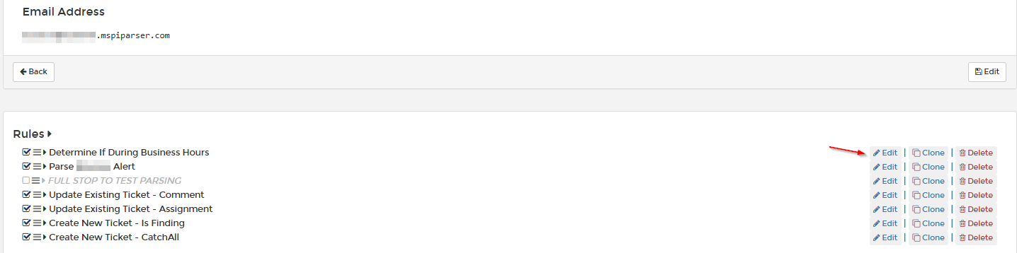 From there, you will see all of the rules that were created for a mailbox and can click on edit for any of them to investigate them further.