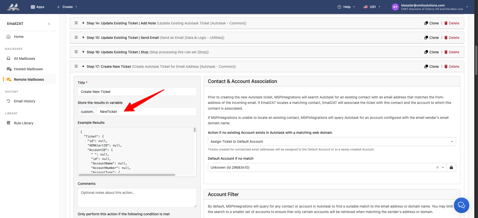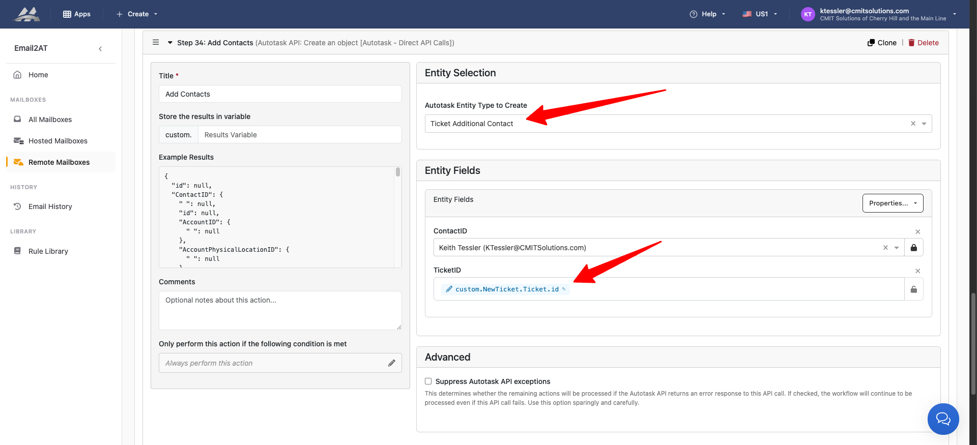 When you make the ticket put a name in “Store the results in variable.”