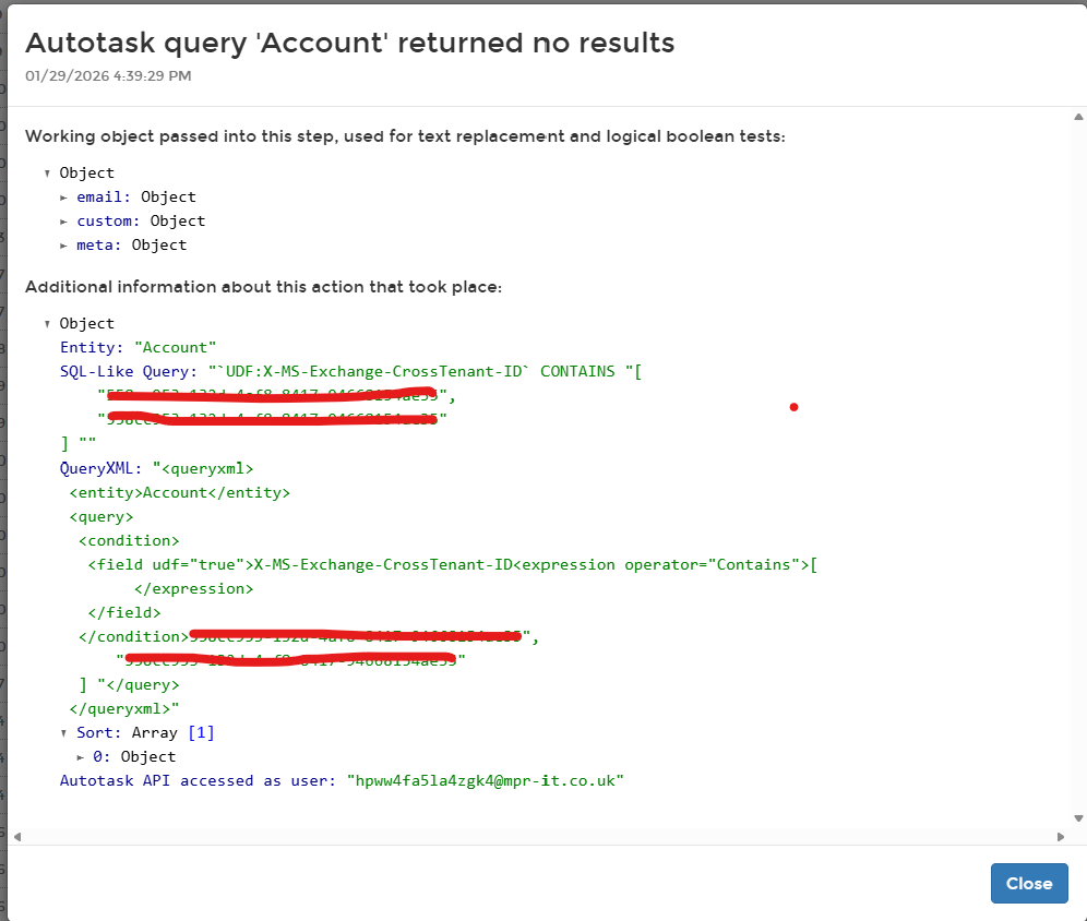 Thank you, I have some Microsoft alert email notification where we cannot identify the organisation to assign to the correct Autotask account.